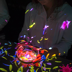 avec un jeu de trampoline sur fond de galaxie, un petit parcours d’équilibre dans une forêt de lumière ou encore des coloriages à réaliser et à scanner qui apparaissent ensuite sur les murs ou sur les sols.